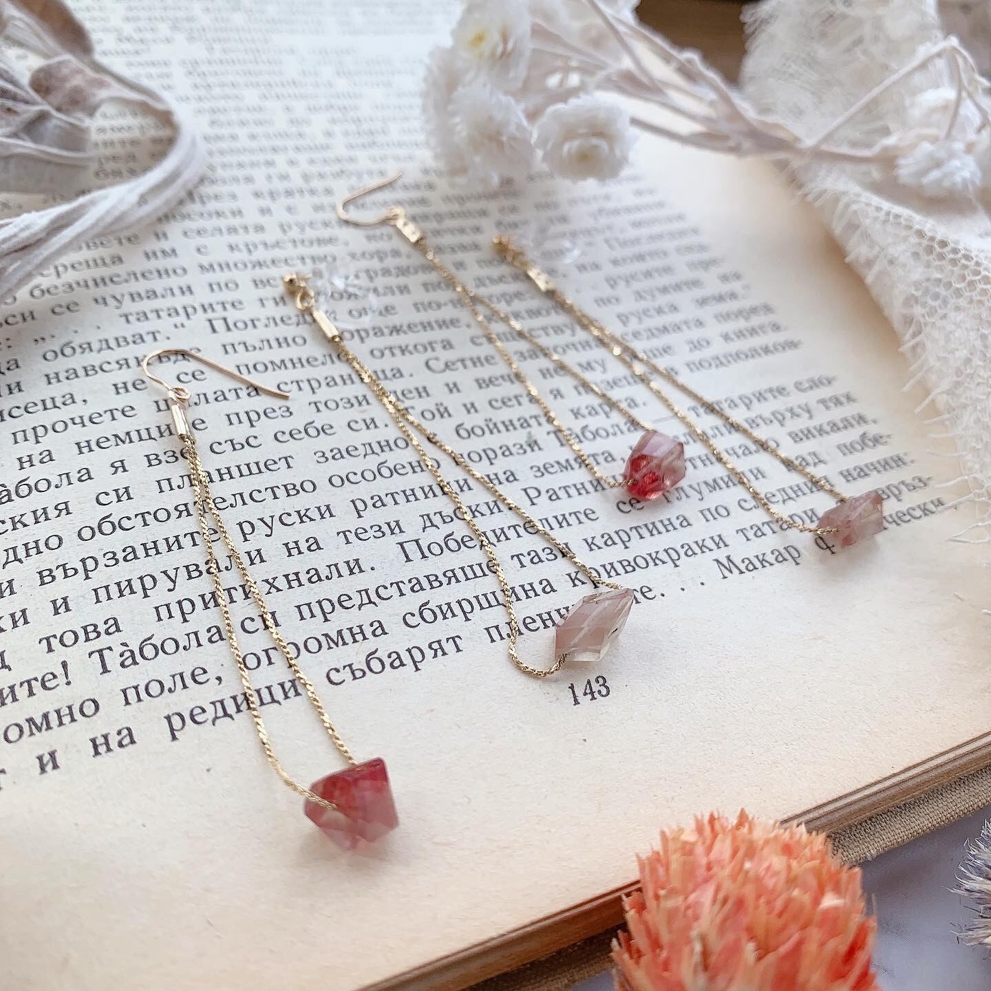 カットストーンが美しい、華奢なチェーンイヤリング&ピアスです。