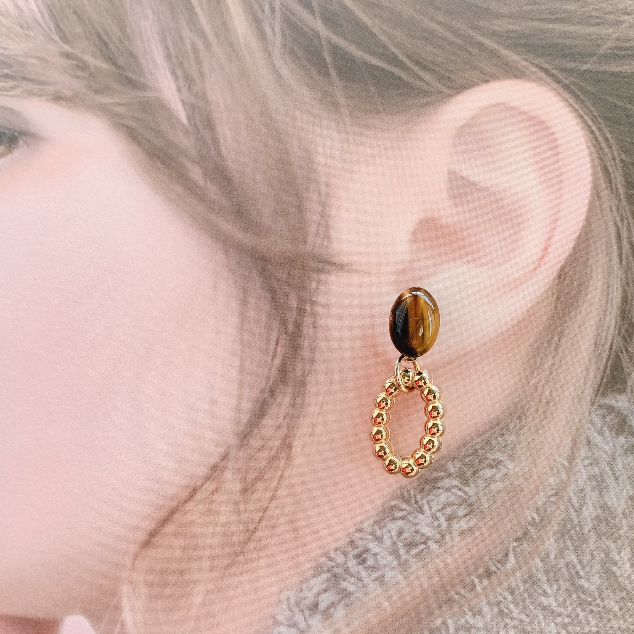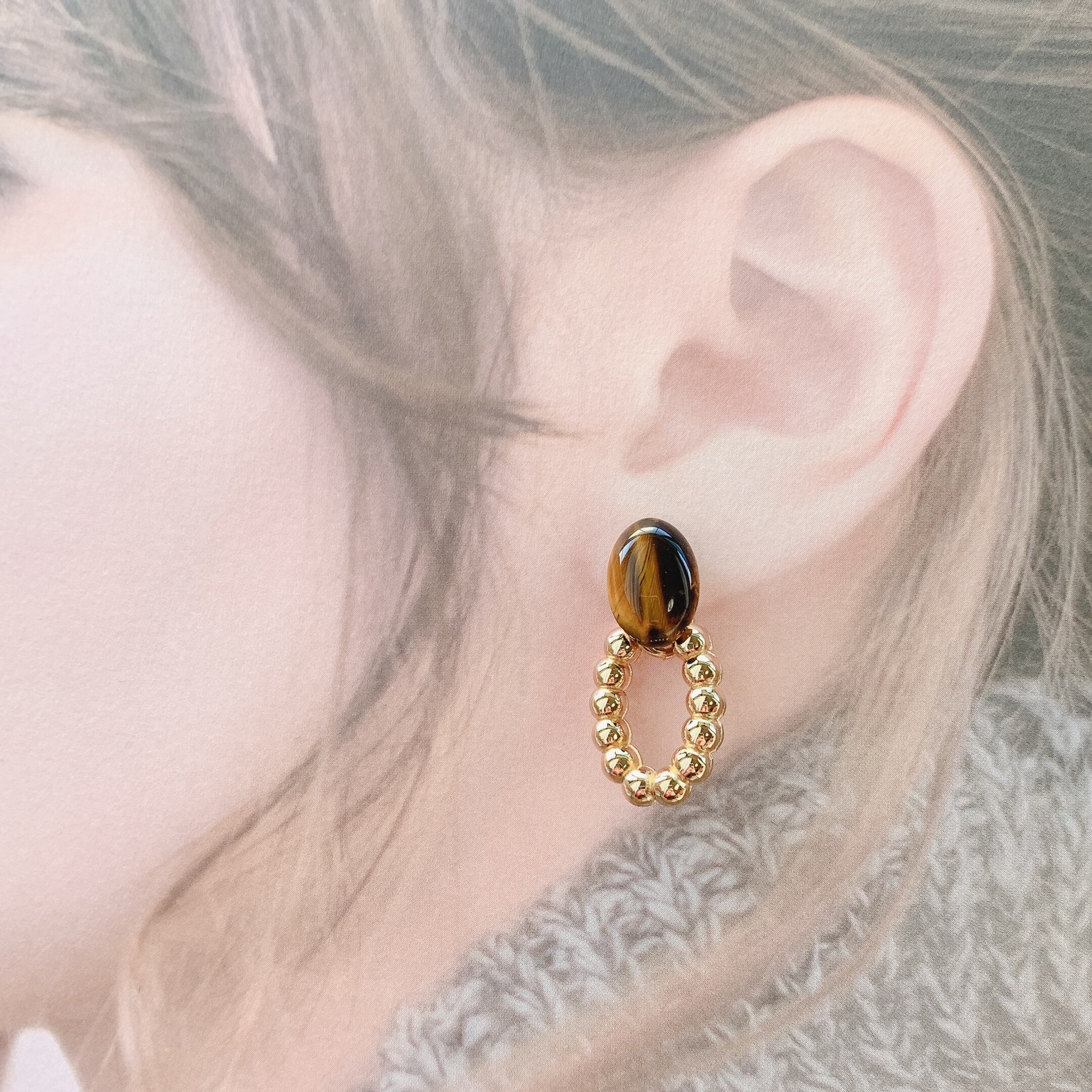 天然石タイガーアイが指元でモードな存在を放つイヤリング/ピアスです。