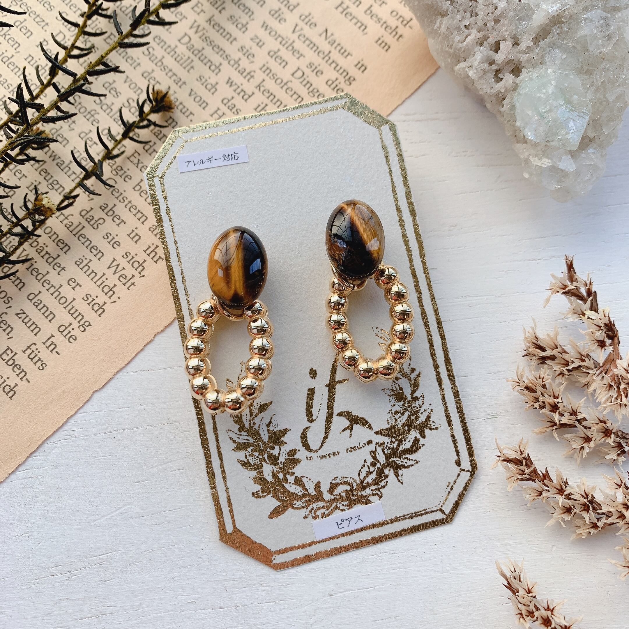 イヤリングは金属アレルギー対応のパーツを使用しておりません。