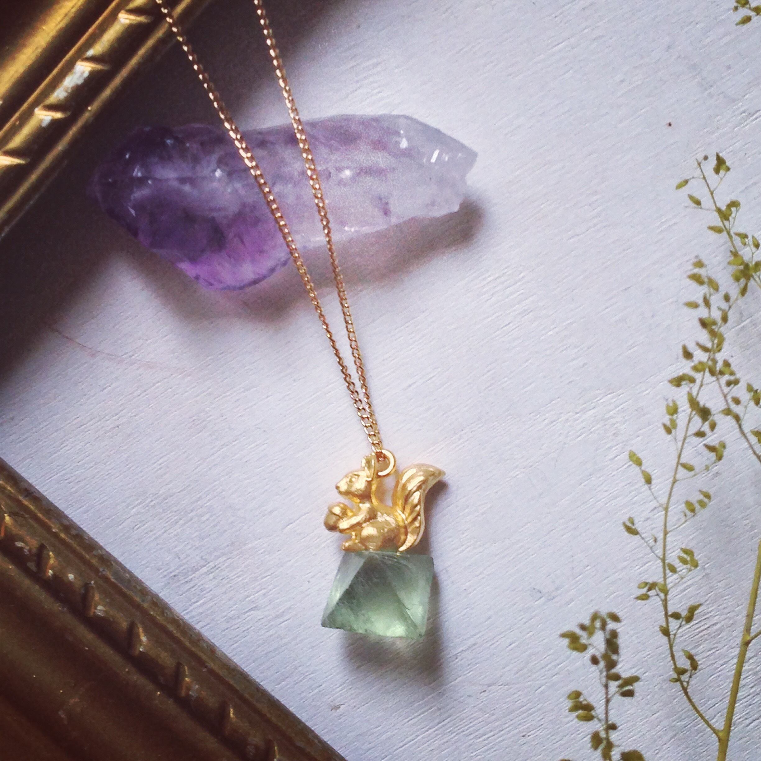 リスがちょこんと乗っているナチュラルな装いのネックレスです。