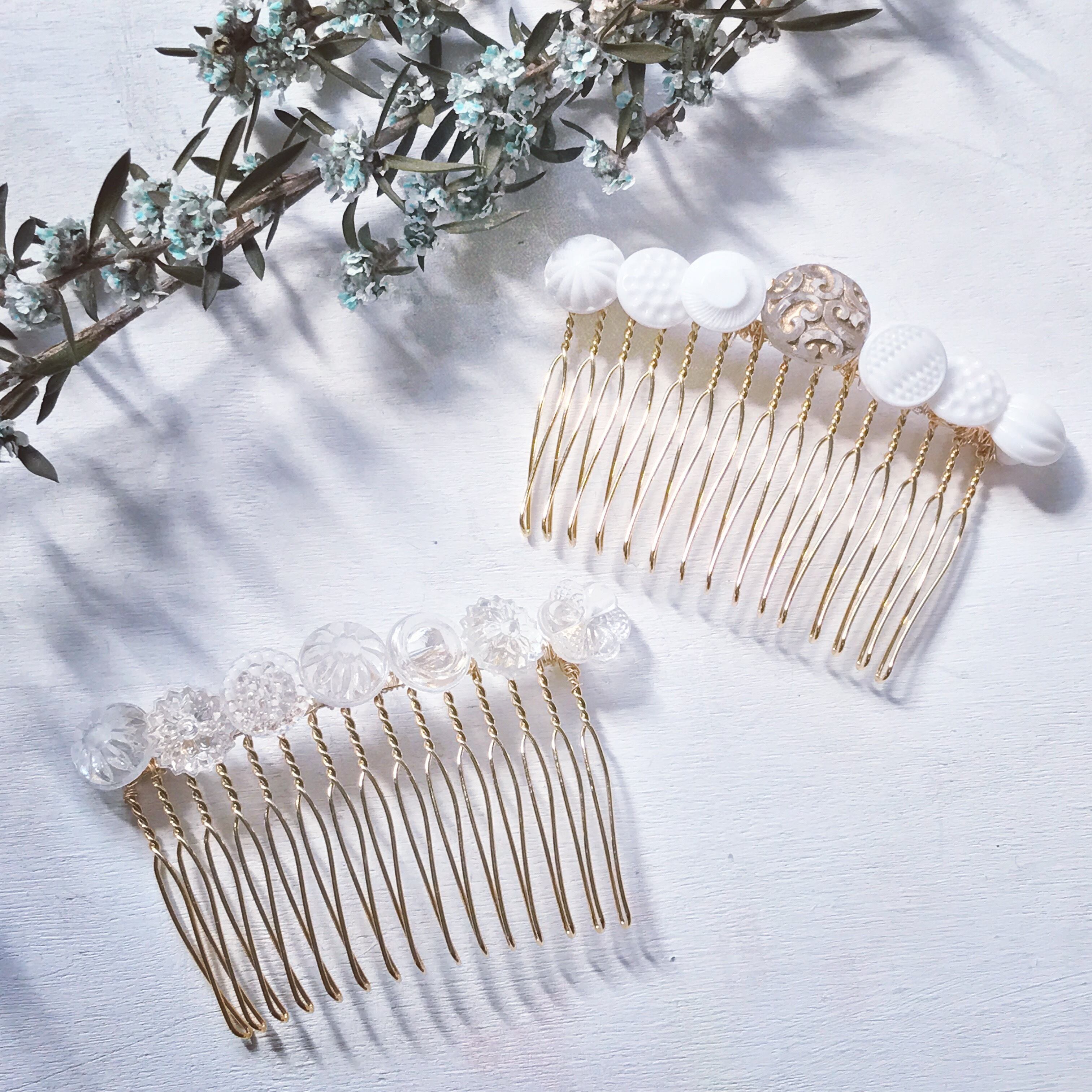 ヴィンテージの小さなガラスボタンを使用したへアーコーム