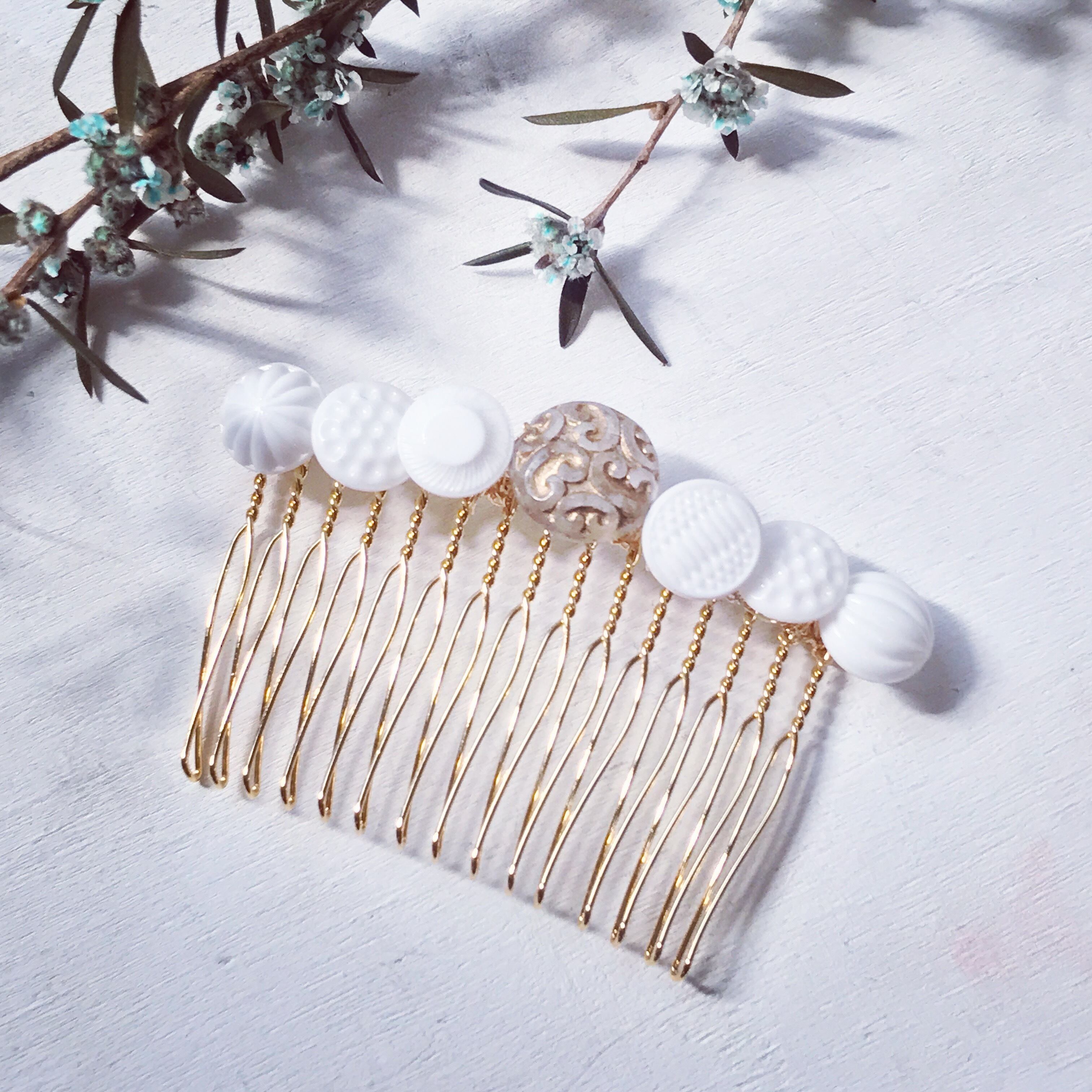 ヴィンテージの小さなガラスボタンを使用したへアーコーム