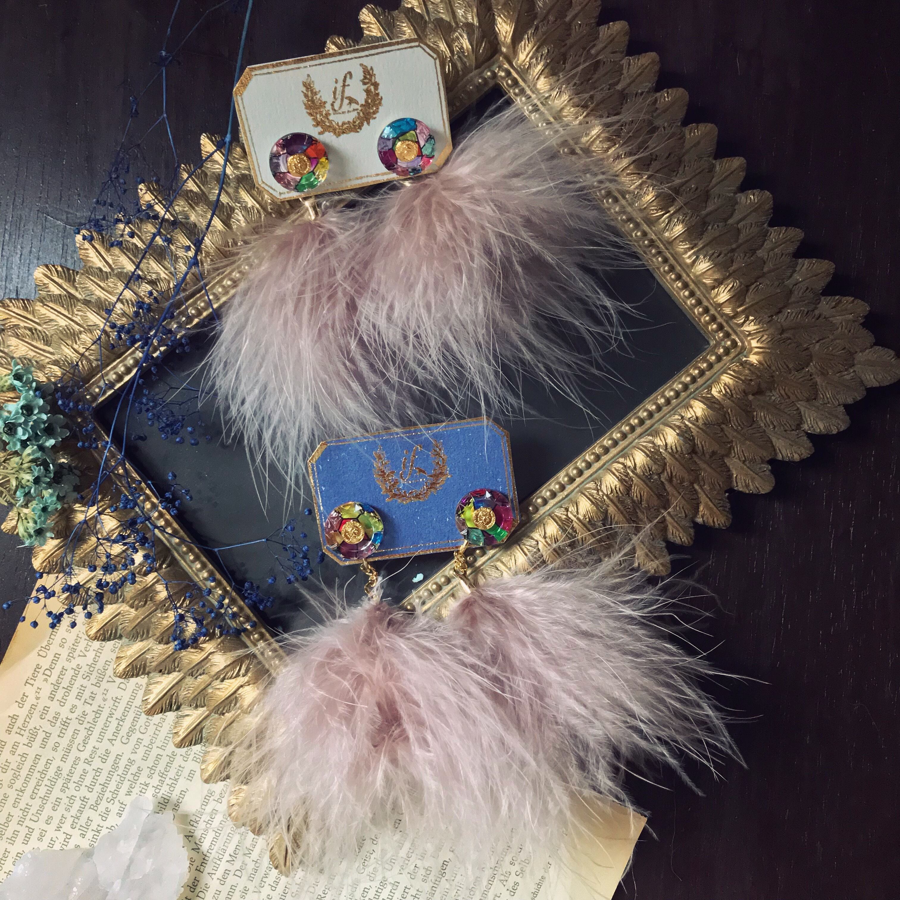 くすみピンクのファーが耳元でゆらゆら揺れる